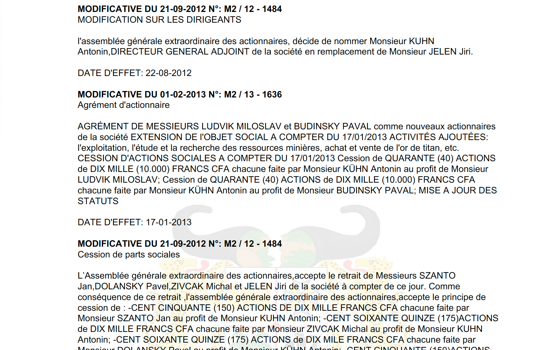 Redakci Odkryto.cz se nyní podařilo získat dokumenty, které odhalují detaily podnikání manažerů z Motola v Africe. Podle výpisu z beninského obchodního rejstříku společnost SBI Holding S.A. vznikla v únoru 2008 a má základní kapitál deset milionů západoafrických franků (v přepočtu asi 377 tisíc korun).