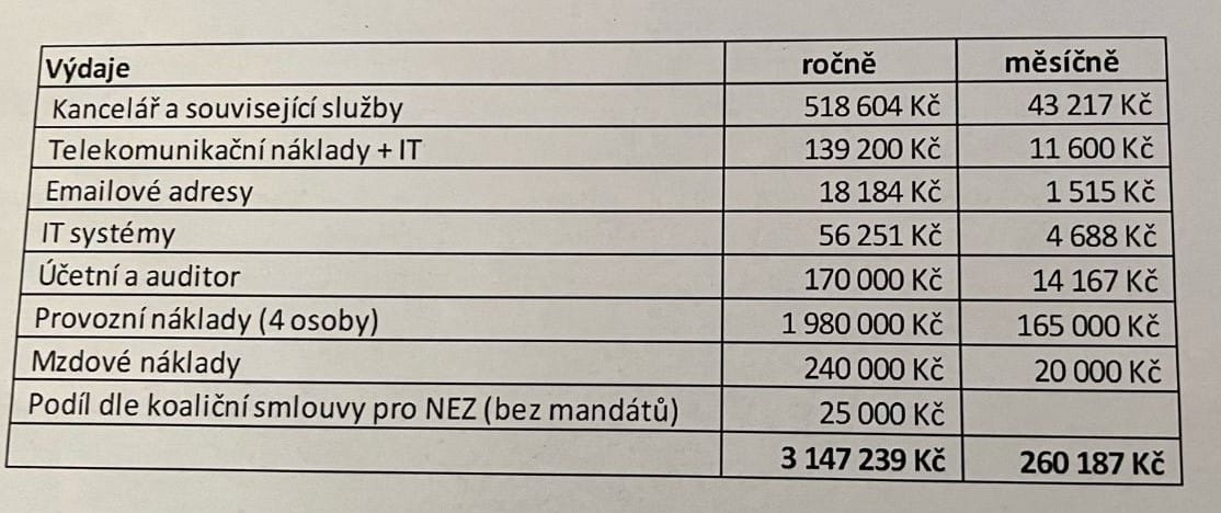 Největší položku tvoří takzvané „Provozní náklady,“ u kterých je uváděno, že jde o čtyři osoby s rozpočtem 1,98 milionů korun.